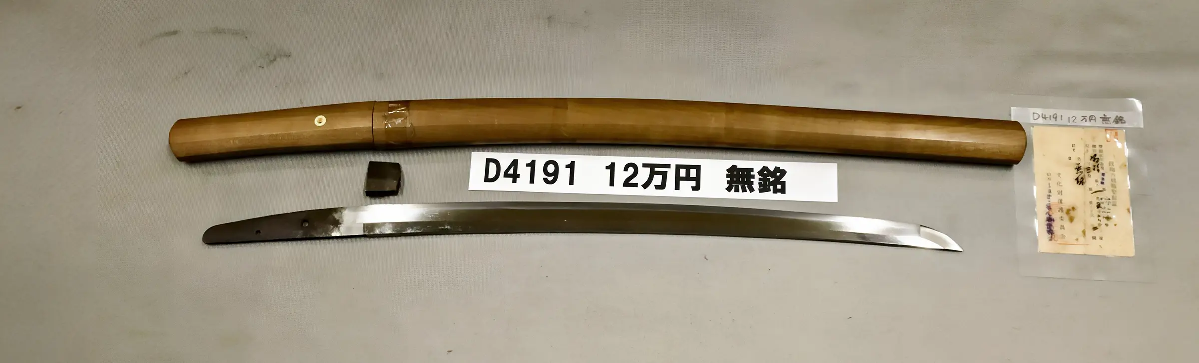 茎(なかご)は生ぶで、左上がりのヤスリ目が整い、栗尻に仕立てられています。銅ハバキを備え、全体に保存状態は良好で、錆や刃こぼれもなく良好です。地鉄の冴えが際立ち、日本刀の美しさを静かに堪能できる一本として、初めて日本刀をご購入される方にもおすすめの一振りです。質実でありながら、時代の息吹を感じさせる脇差として、美術的鑑賞にも適しています。