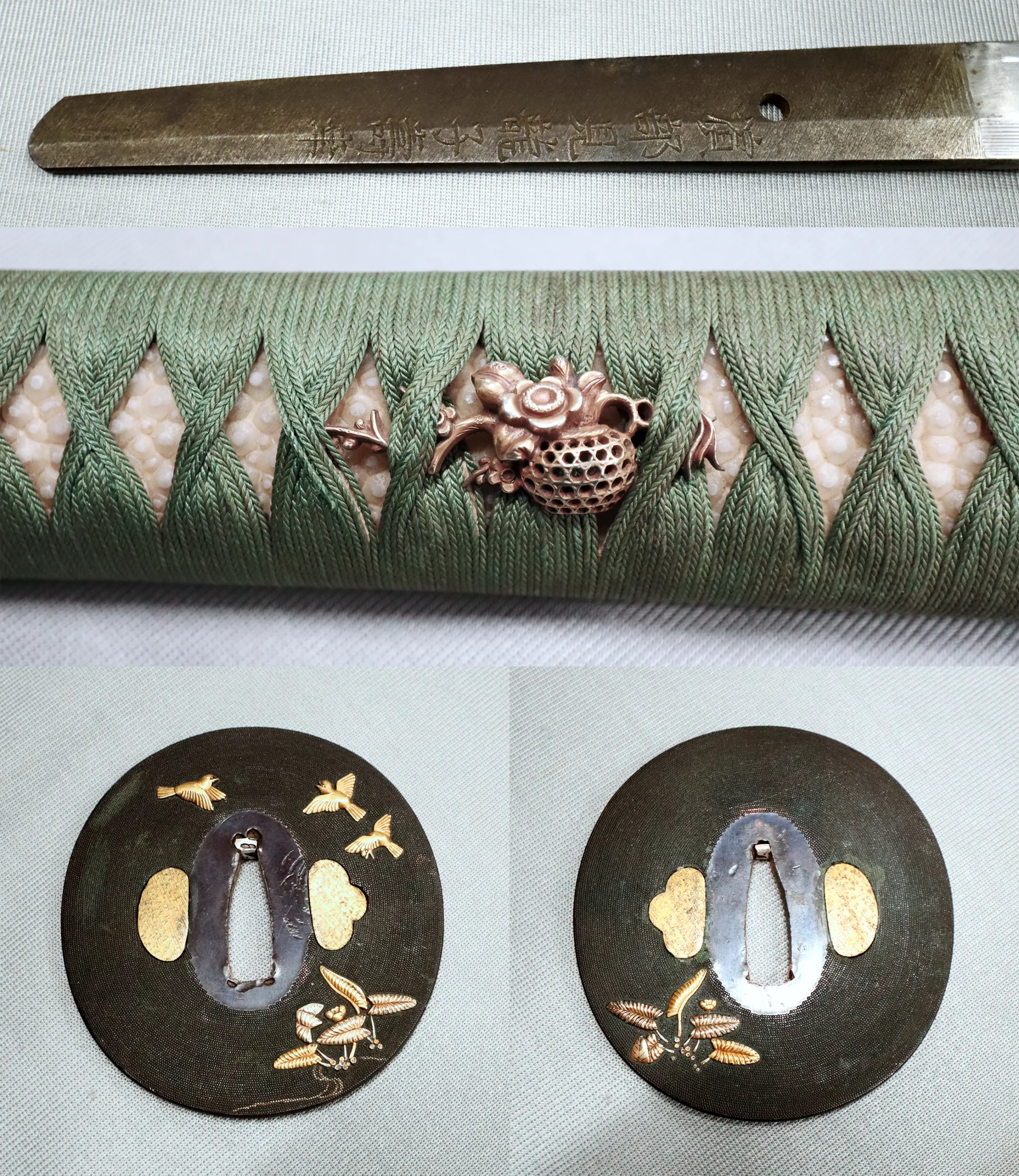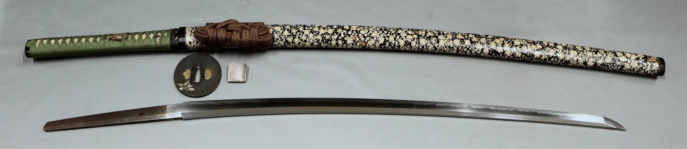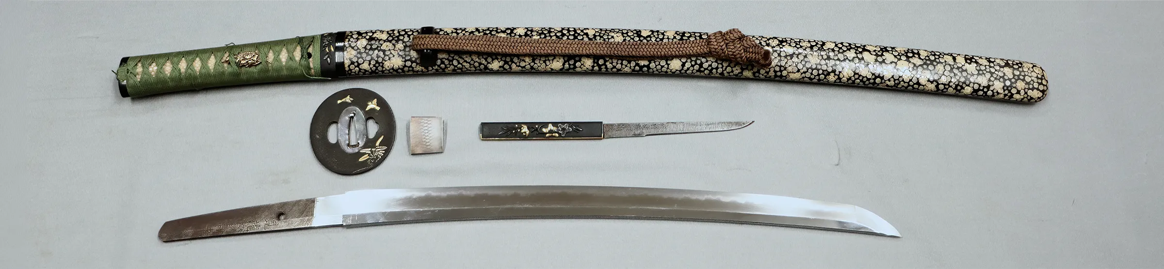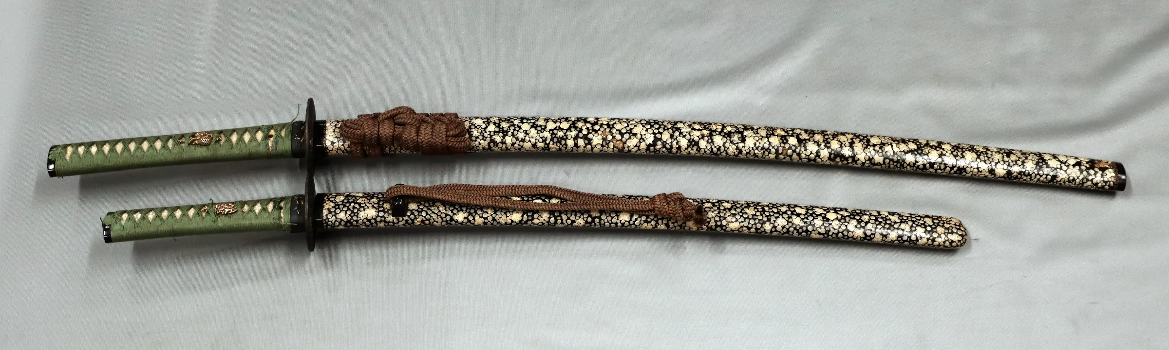 天保十二年(1841年)、濱部見龍子壽幸(としゆき)による大小揃いです。天保期は飢饉や大塩平八郎の乱、外国船来航と封建制の矛盾が表面化した時代にあたり、本品は「格」と「実」の両輪で激動を生き抜こうとした人々の精神を体現した一具といえます。